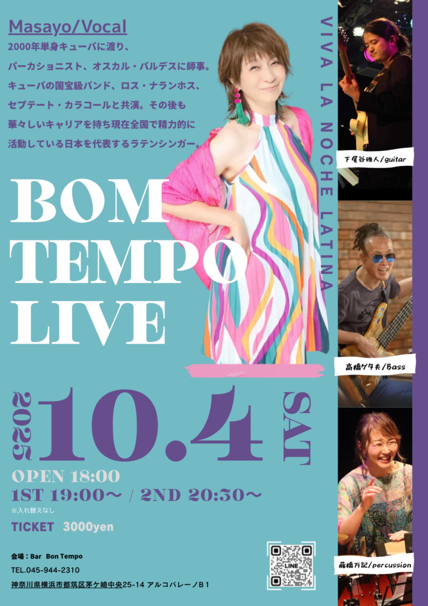 高橋ゲタ夫(Bass), 藤橋万記(Perc), 下梶谷雅人(Gt), Masayo(Vo)