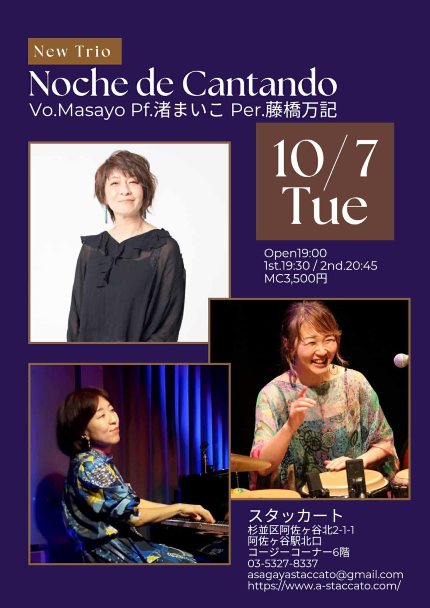 渚まいこ(Pf), 藤橋万記(Perc), Masayo(Vo)