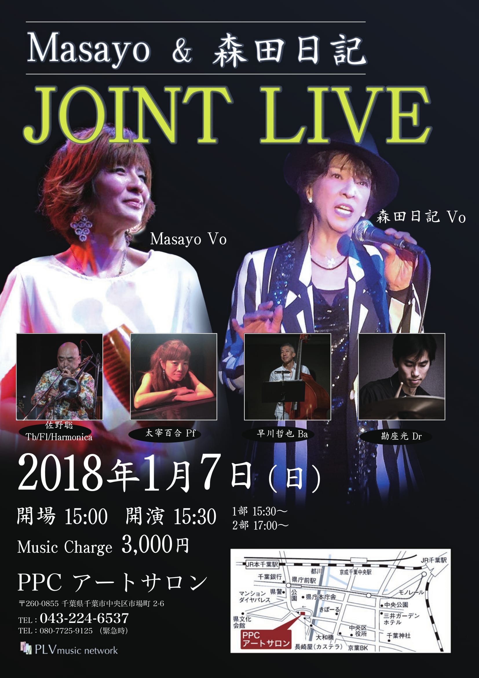 member :Masayo Vo 森田日記 Vo 太宰百合Pf 早川哲也Bass 勘座光Drums 佐野聡Tb/Fl/Harmonica
