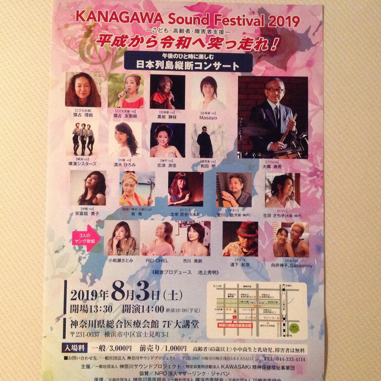 charege :一般¥3,000 前売1,000 高齢者(65歳以上)小中高生と乳幼児、障がい者は無料
