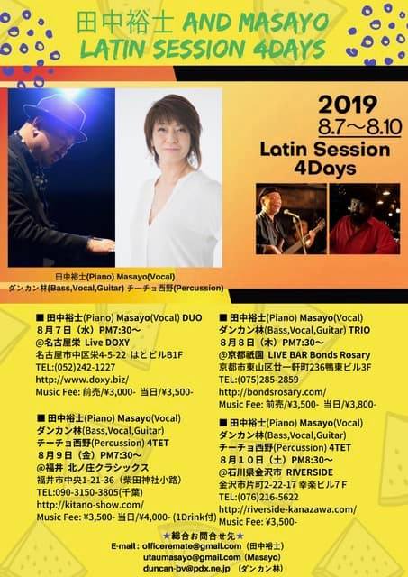 member:田中裕士 pf, Masayo Vo, ダンカン林 Ba・Vo・gt, チーチョ西野 Perc