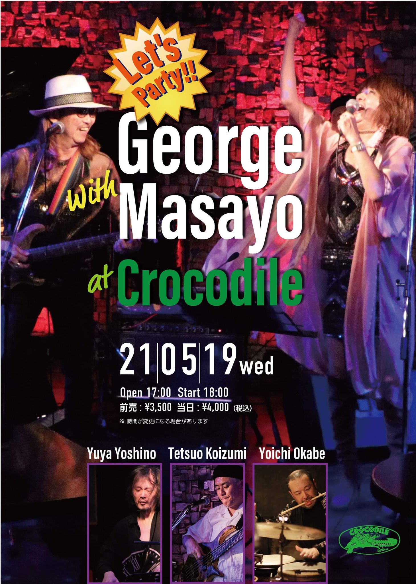 member:Masayo Vo, George Hirasawa Gt・Vo, 吉野ユウヤ pf, 小泉哲夫 b・coro, 岡部洋一 perc