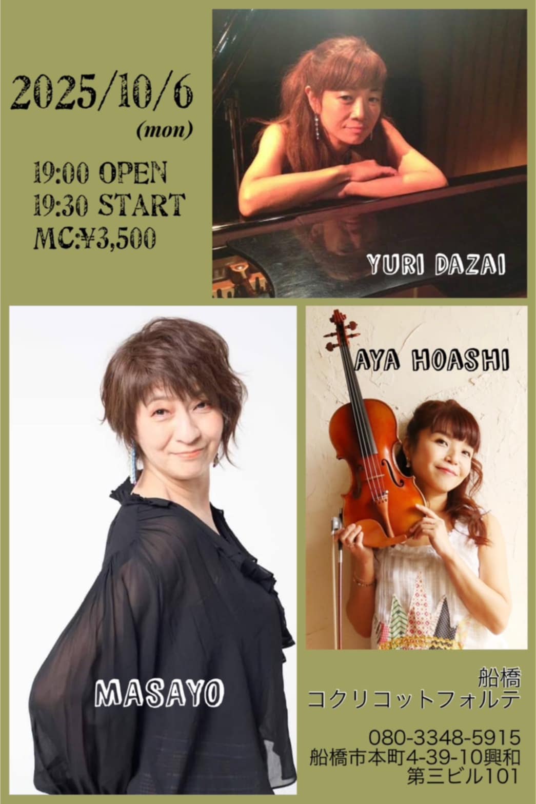 太宰百合(Pf), 帆足彩(Violin), Masayo(Vo)