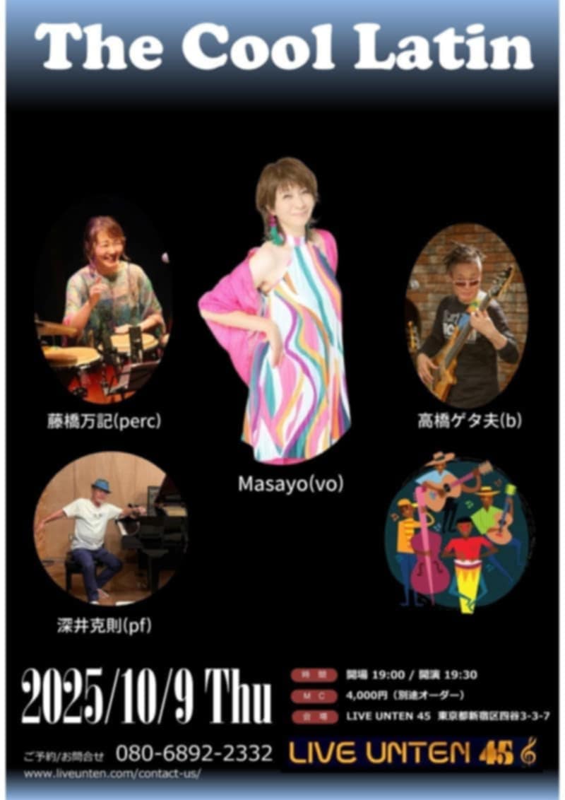 深井克則(Pf), 高橋ゲタ夫(Bass), 藤橋万記(Perc), Masayo(Vo)
