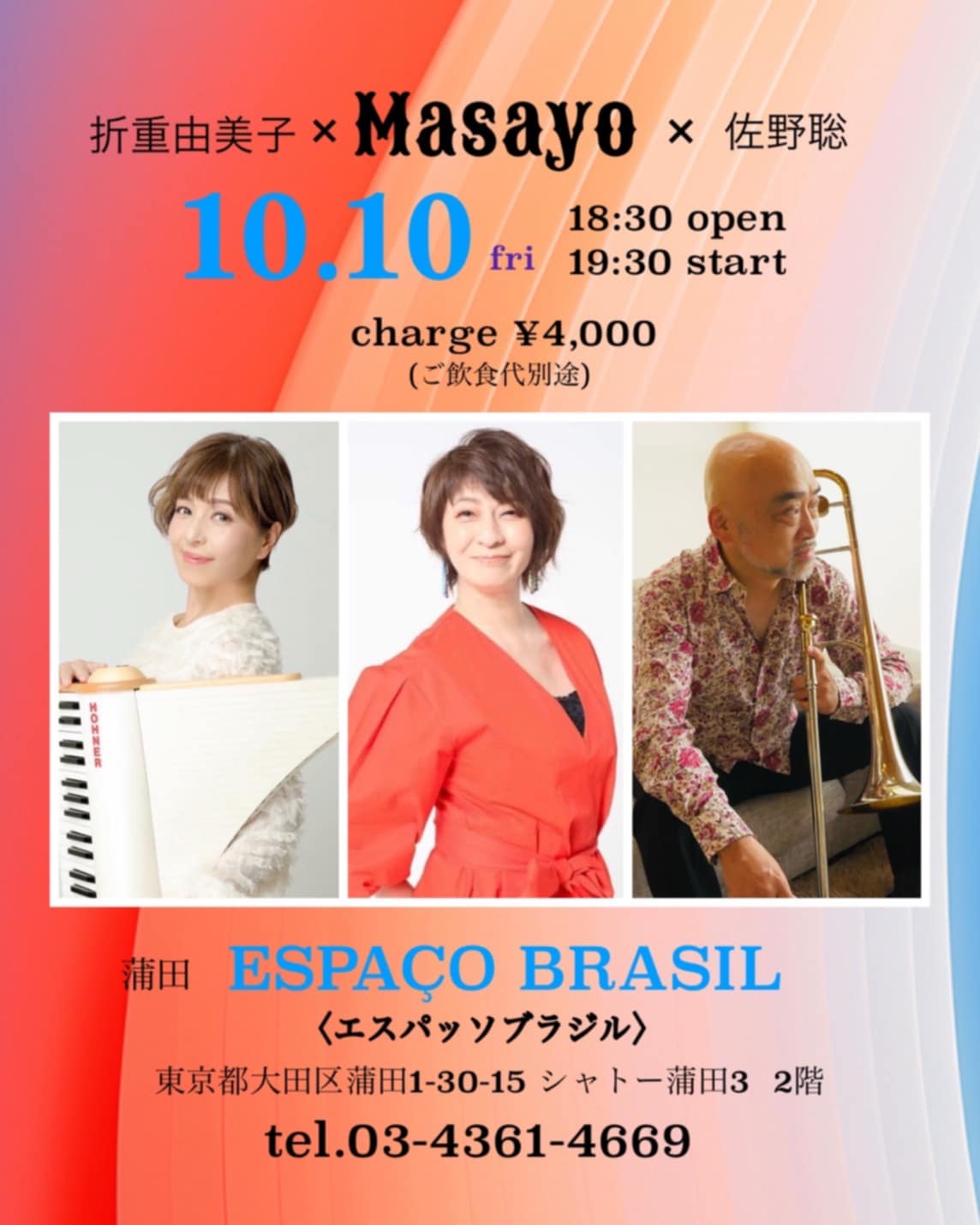 折重由美子(Pf/Claviola), 佐野聡(Tb/Fl), Masayo(Vo)